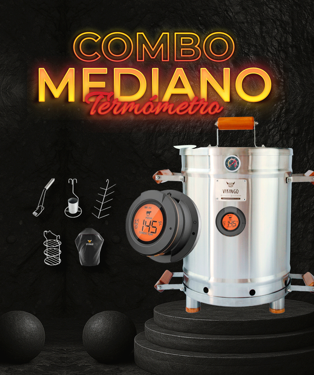 Combo Barril Asador Mediano 12,7 Kg con Termómetro Inteligente | Vikingo Barriles México
