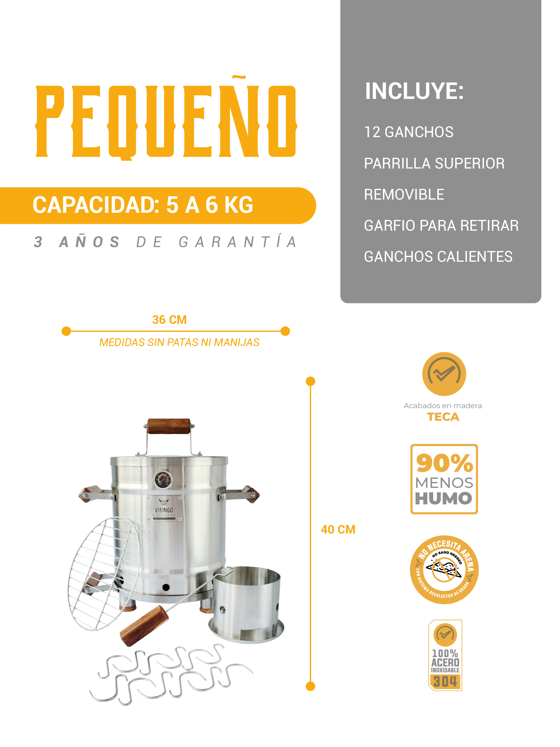- Tamaño y Capacidad: Dimensiones de 40x36 cm, incluye 12 ganchos, parrilla superior removible y garfio para retirar ganchos calientes.